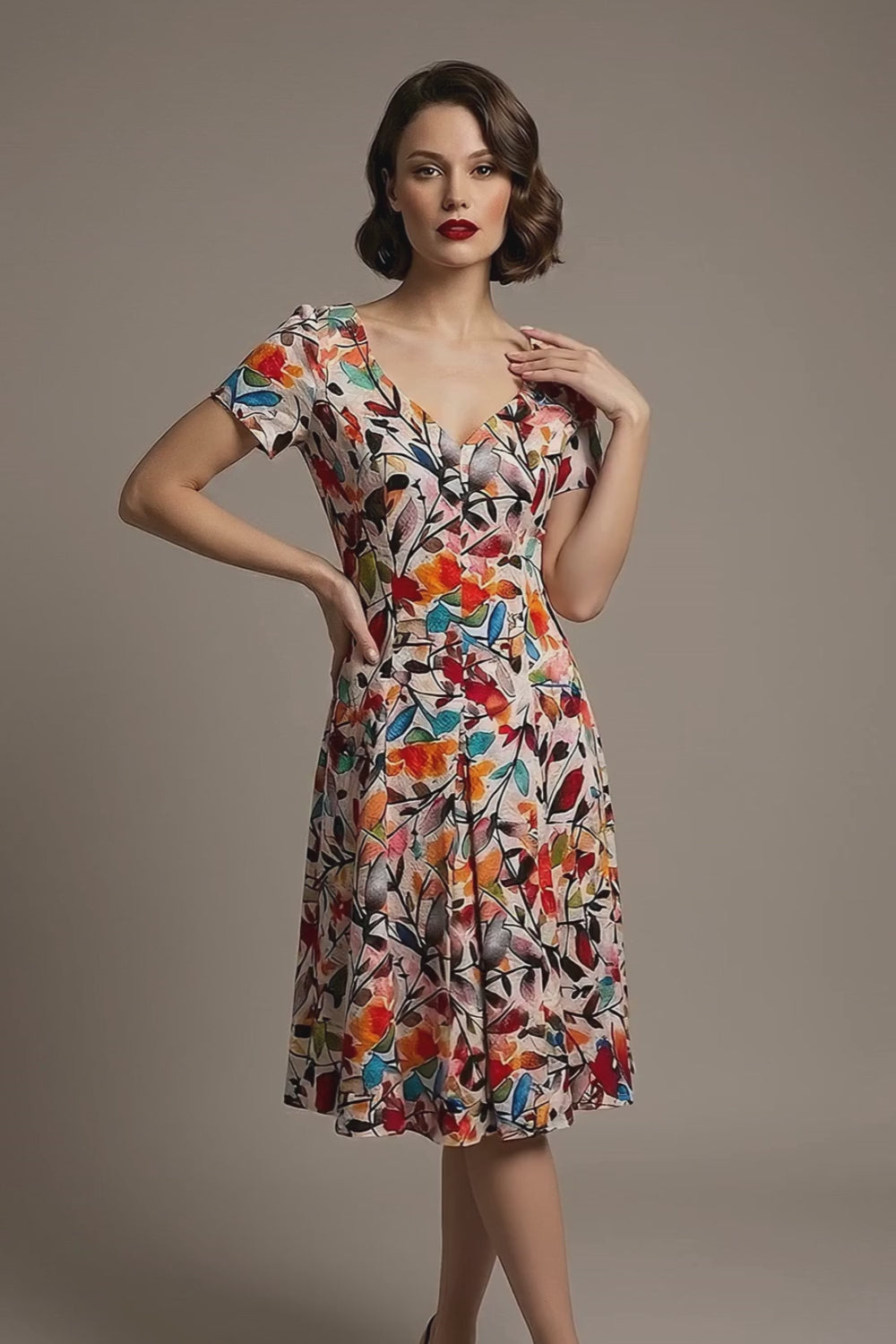 The secret lies in our brand-new Silk Touch fabric, beautifully showcased in our striking Erratic Leaf print. Gloriously lightweight and exquisitely soft against the skin, this premium non-stretch fabric is designed to maintain a flawless, elegant drape, boasting a subtle satin sheen that catches the light with every step you take. But Valia isn't just about a captivating print; it is about impeccable British tailoring. The dress features a beautifully framing V-neckline at both the front and back, paired with classic short sleeves for perfectly balanced coverage.